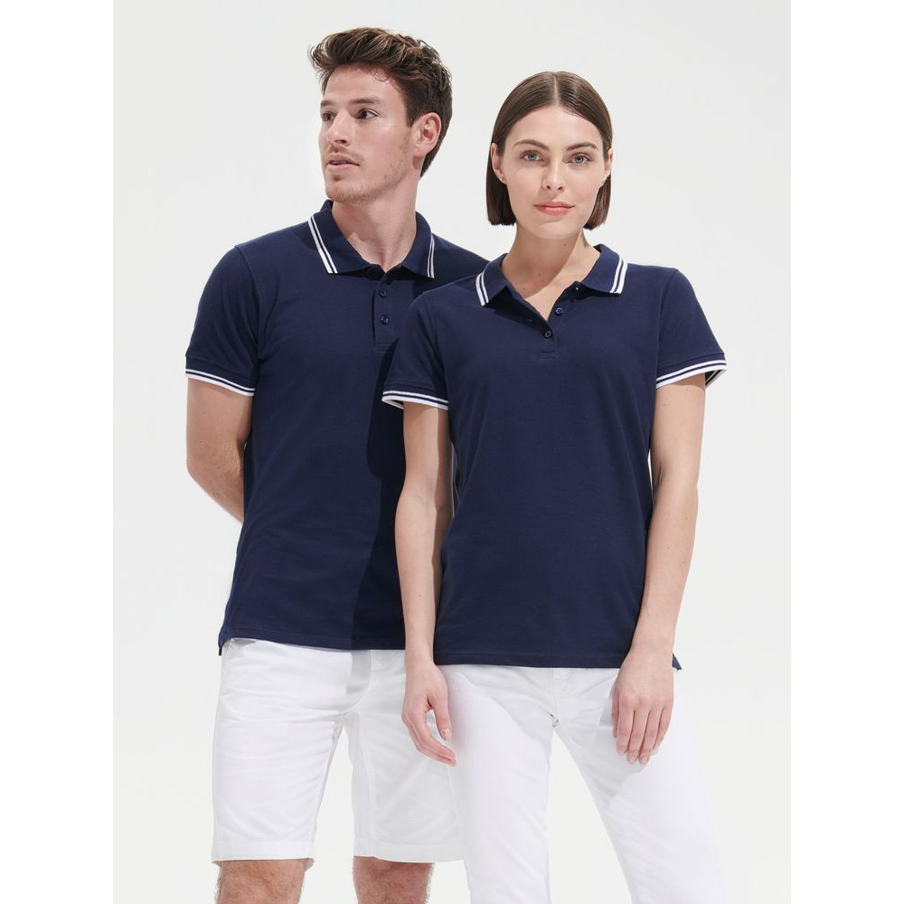 Рубашка поло женская Pasadena Women 200 с контрастной отделкой, черная с зеленым