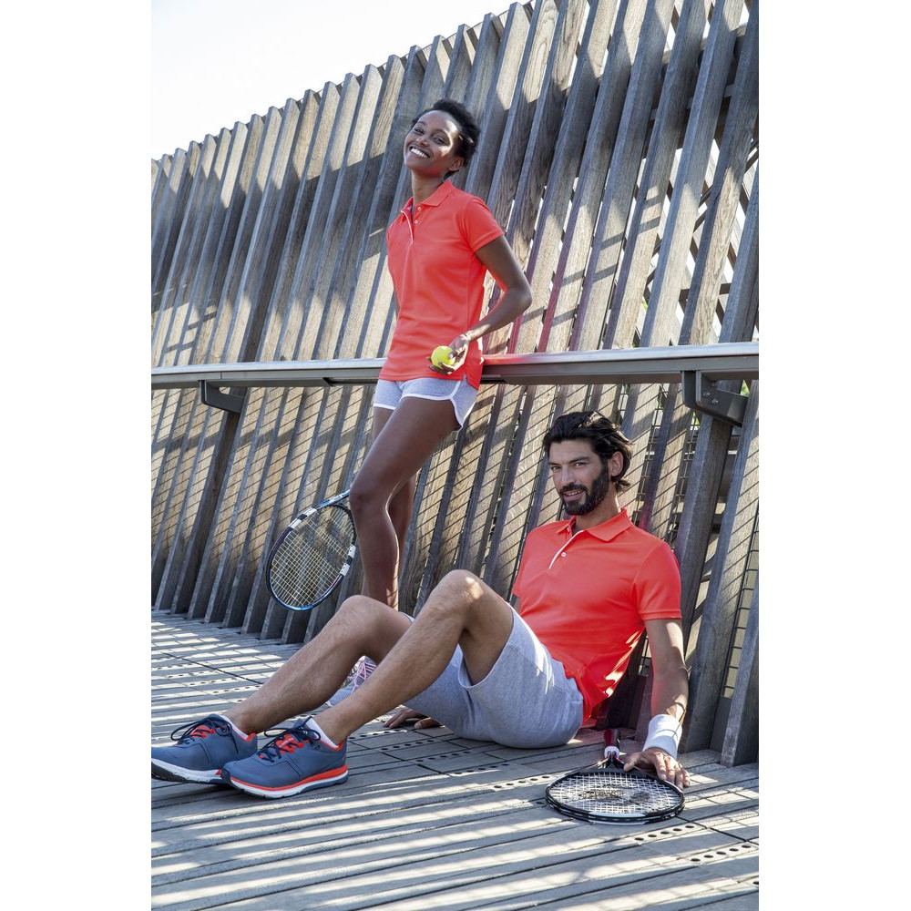 Спортивная женская рубашка поло слегка приталенного силуэта. Легкий, дышащий и тянущийся материал быстро сохнет и не сковывает движения, что позволяется выложиться на максимум при занятии спортом.