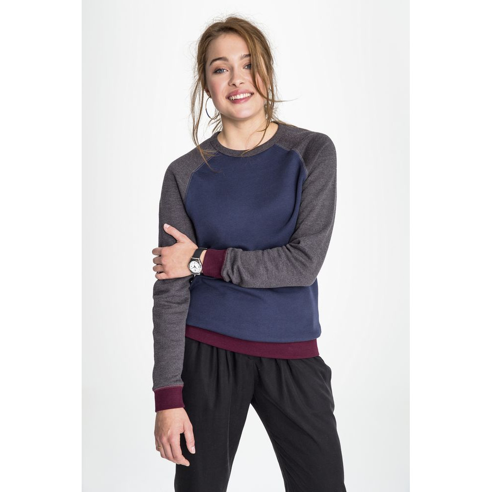 Трехцветный свитшот в стиле 80-х с рукавом реглан. Лейбл производителя в боковом шве изнутри, в шве горловины — только бирка с размером, что позволяет вам нанести свой логотип.