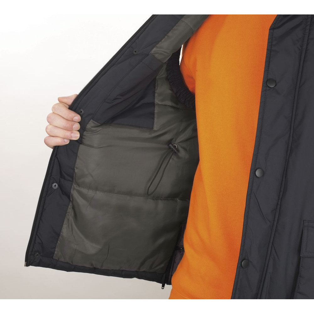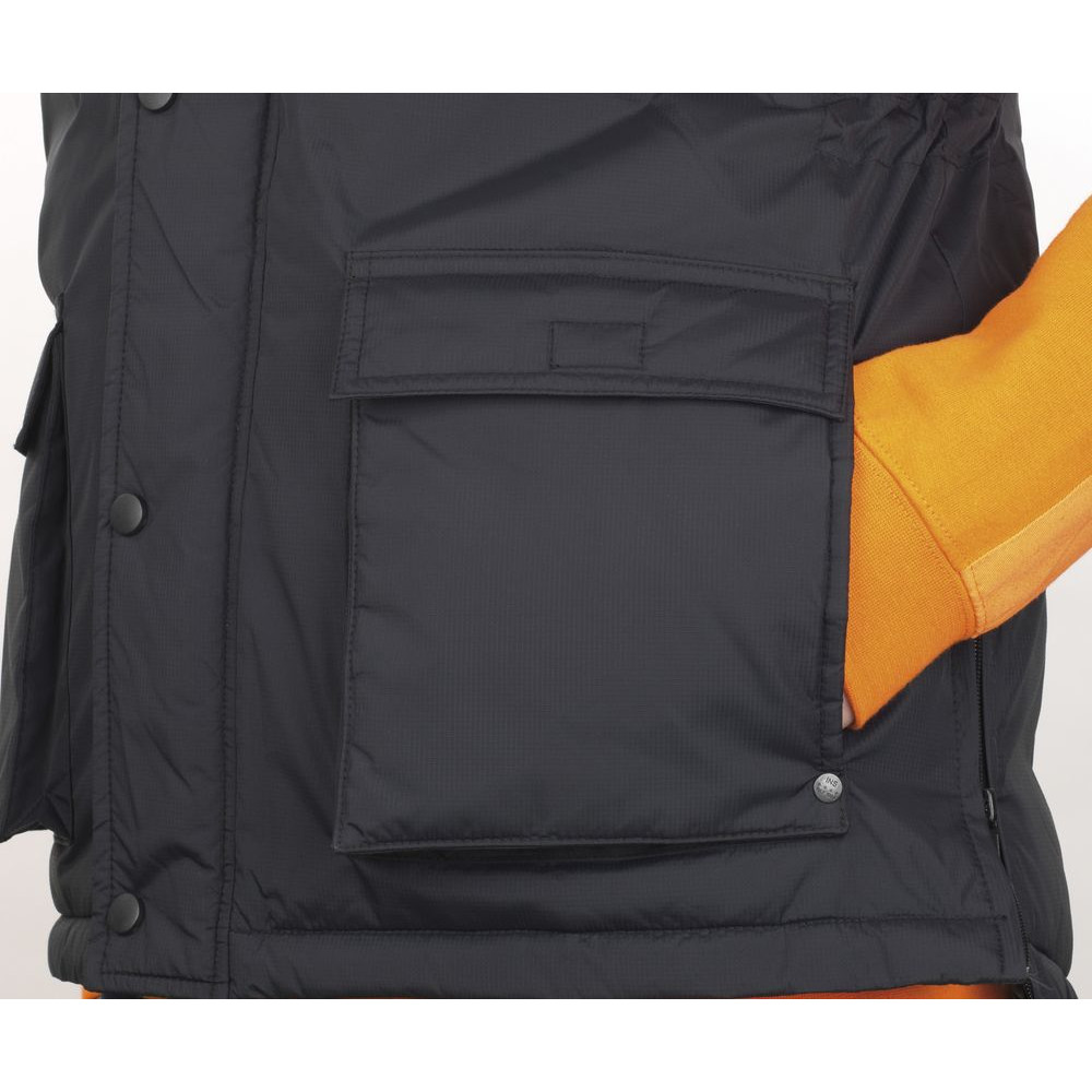 - Две молнии по бокам внизу для большей легкости движения, одна внутренняя молния на груди и одна — внизу жилета