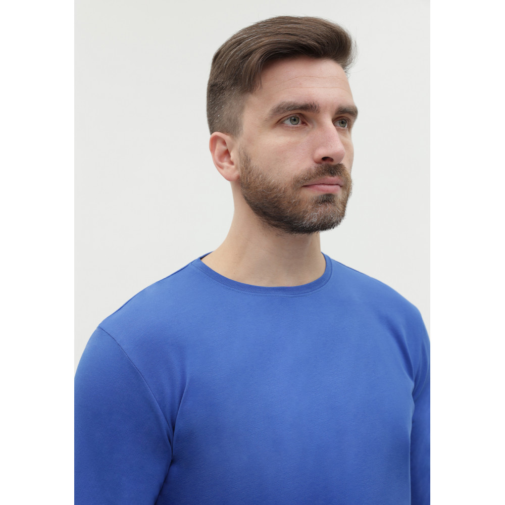 Универсальная футболка прямого силуэта с округлым воротом и длинным втачным рукавом. Плечевые швы и шов горловины усилены настрочной бейкой из основного полотна.