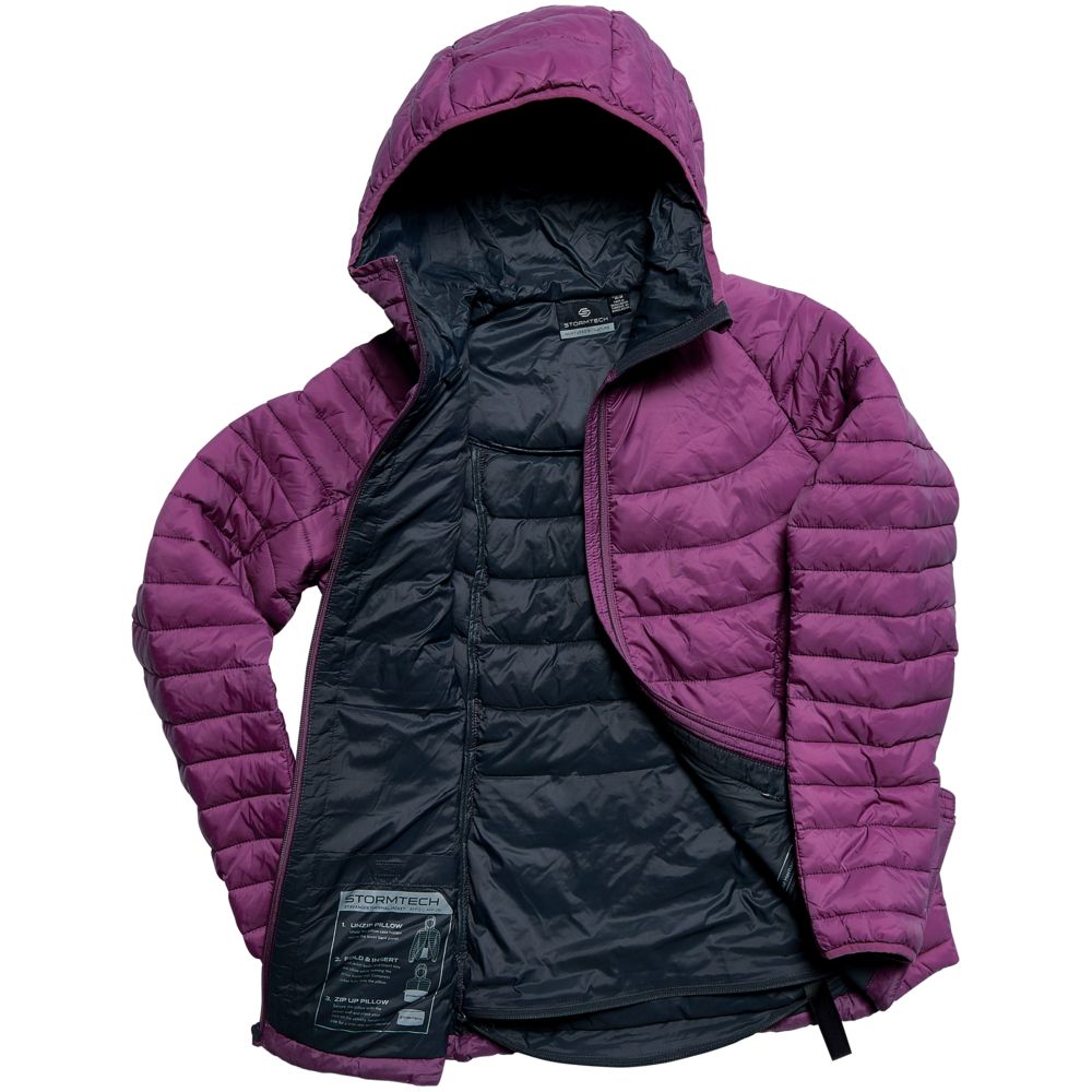 Эргономичная и ультралегкая куртка с капюшоном складывается в карман, расположенный внутри на спинке, и превращается в дорожную подушку.