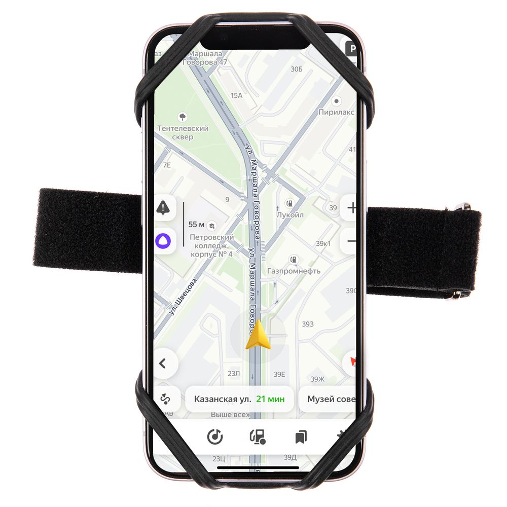 С помощью короткого ремешка на липучке можно закрепить телефон на руле автомобиля или велосипеда, а также на спортивном тренажере, бутылке для воды, предплечье или даже ручке детской коляски. Длинный ремень позволит закрепить телефон на поясе во время бега или прогулки. Также на нем можно разместить мини-сумку для хранения мелочей — получится комплект в виде поясной сумки и держателя для телефона одновременно.