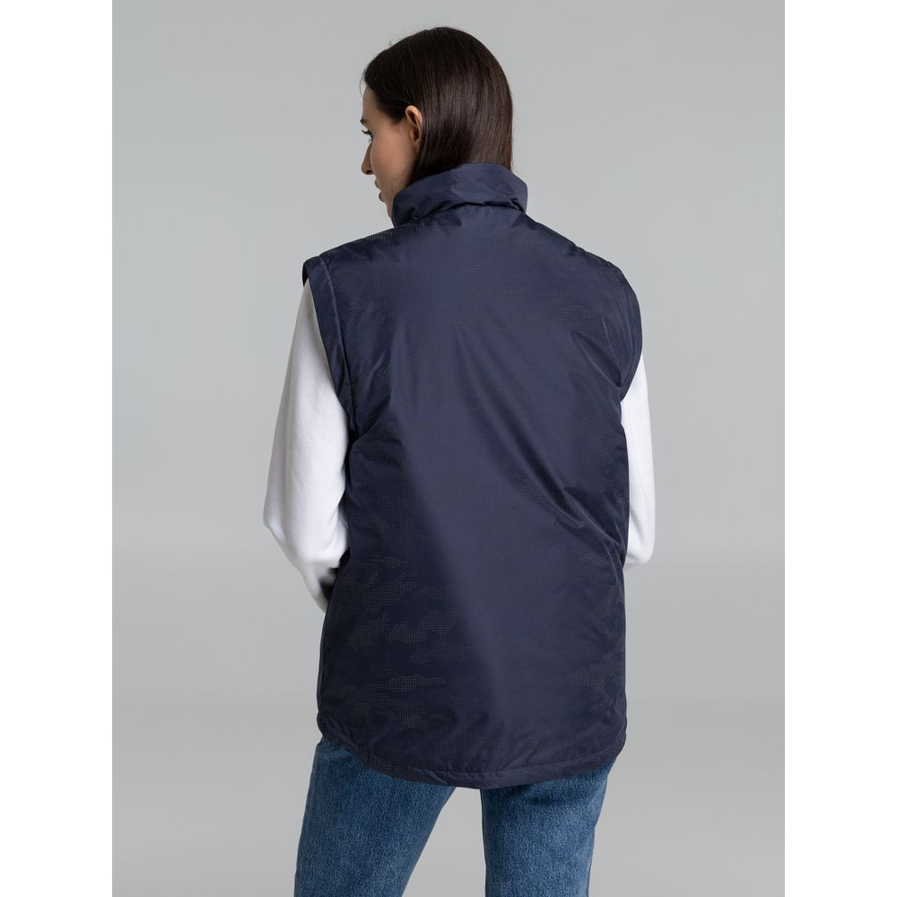 Жилет с воротником-стойкой и светоотражающим рисунком.