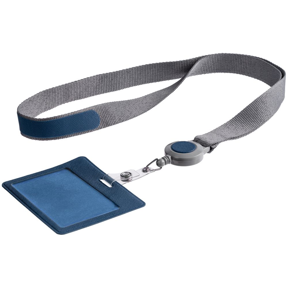 Чехол для карточки с лентой и ретрактором Devon, синий