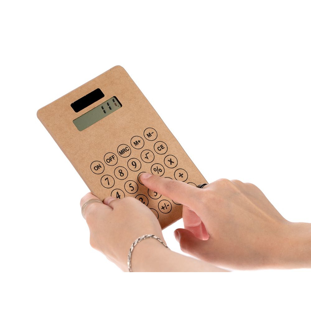 Компактный калькулятор из крафтового картона с крупными клавишами.