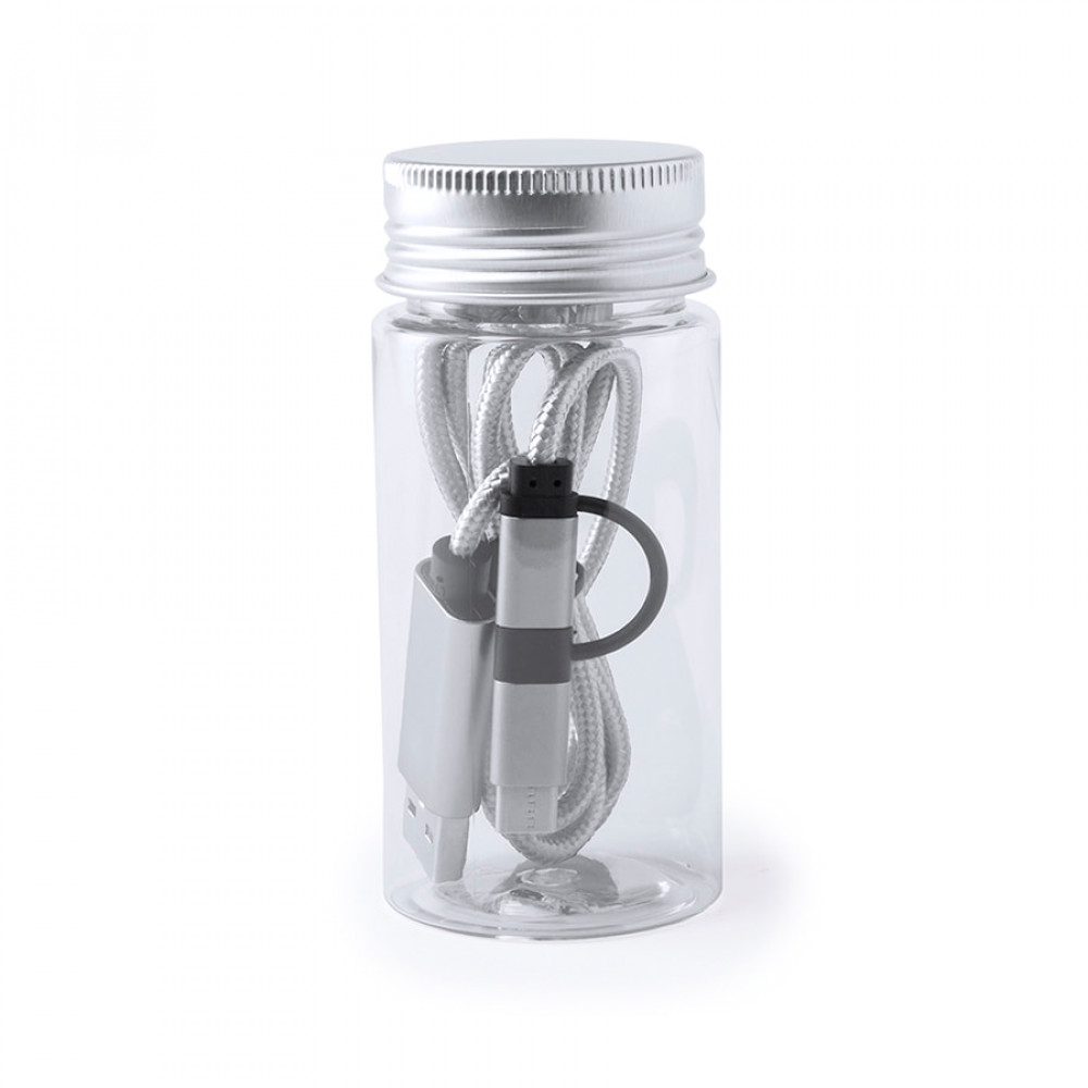 Универсальный зарядный кабельв оригинальном оформлении, упакован в пластиковую прозрачную баночку с завинчивающейся крышкой.