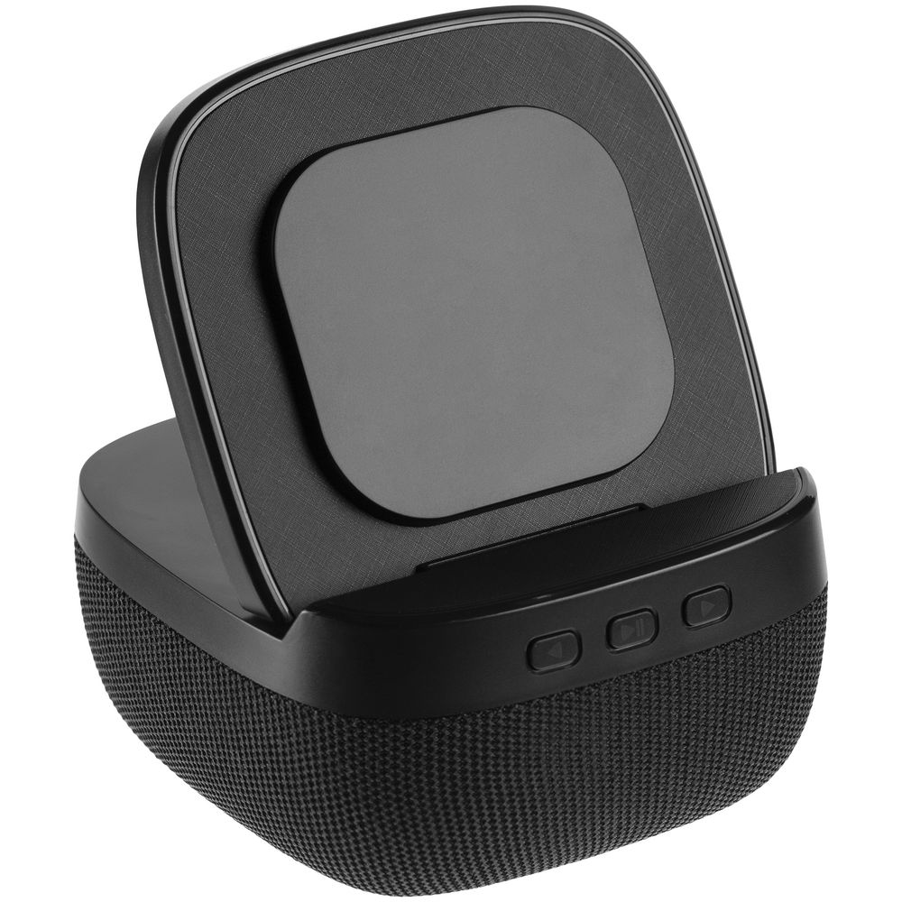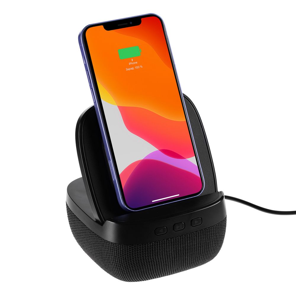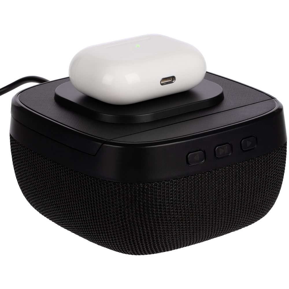 Колонка с беспроводной зарядкой Esca и подсветкой логотипа, черная 3399 ₽