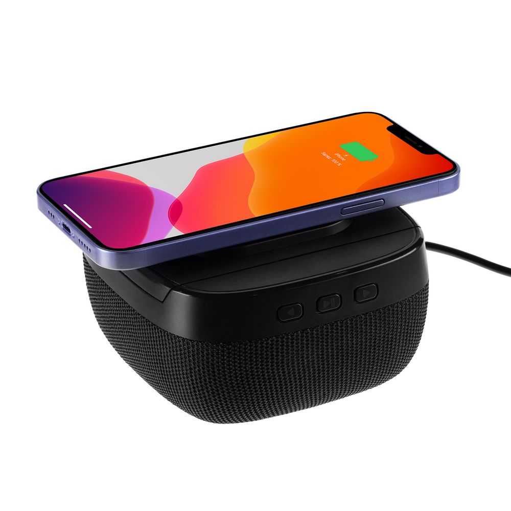 • Колонка с беспроводной зарядкой Esca и подсветкой логотипа, черная