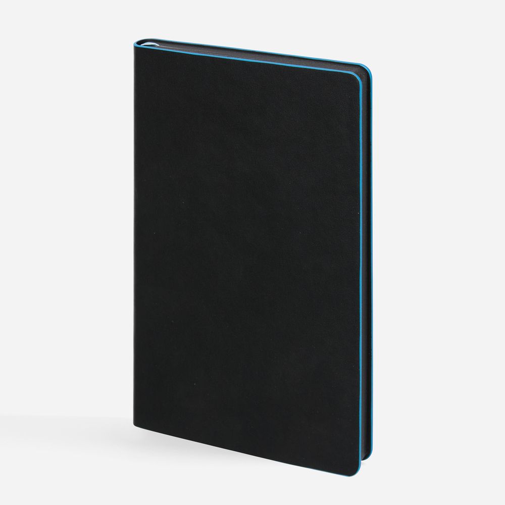 Ежедневник с гибкой обложкой, выполнен из материала Waltz, черный АА, дополнен цветными срезом обложки и ляссе.