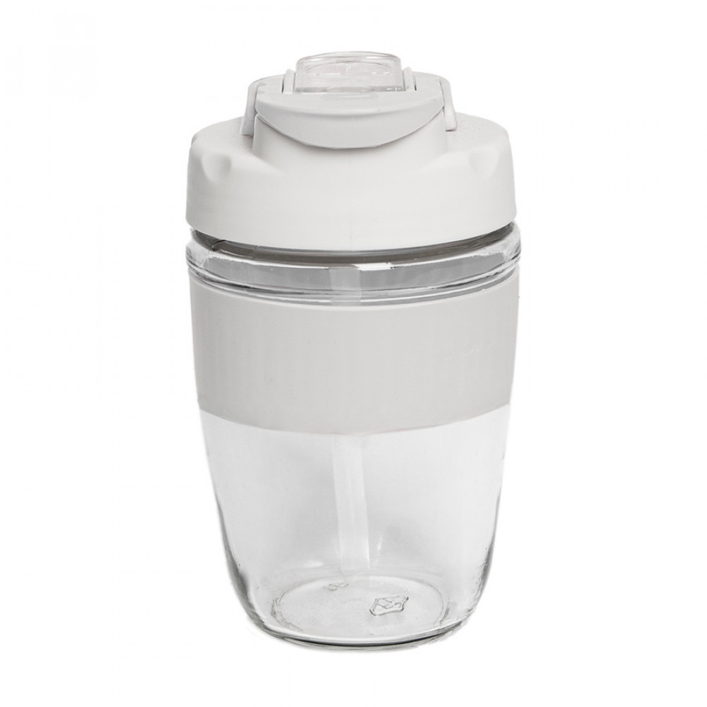 Стакан EASY с крышкой, 400мл. прозрачный с белым, стекло, пластик