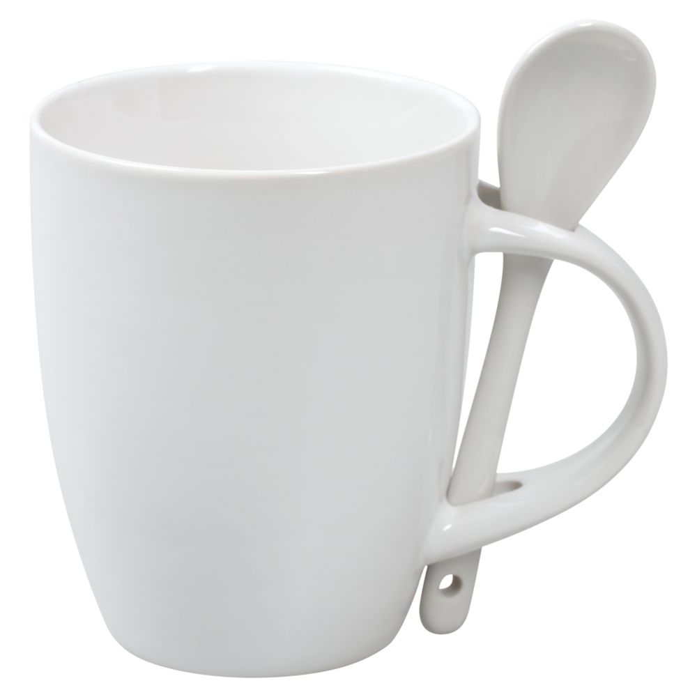 Кружка с ложкой Cheer Up, белая с белой