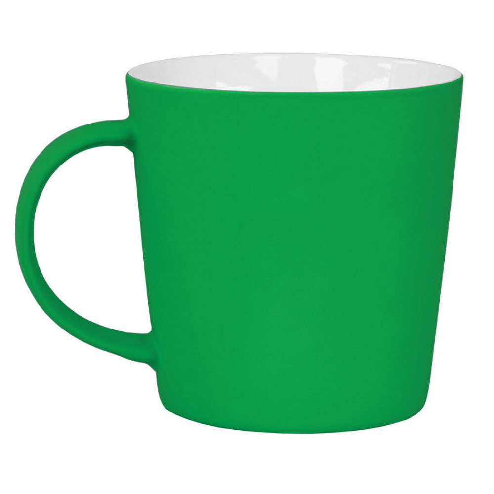 Фарфоровая кружка необычной формы с прорезиненным покрытием – приятным на ощупь, ударопрочным и износостойким. Ее вместительность поможет реже отрываться от дел и дольше наслаждаться любимым напитком.