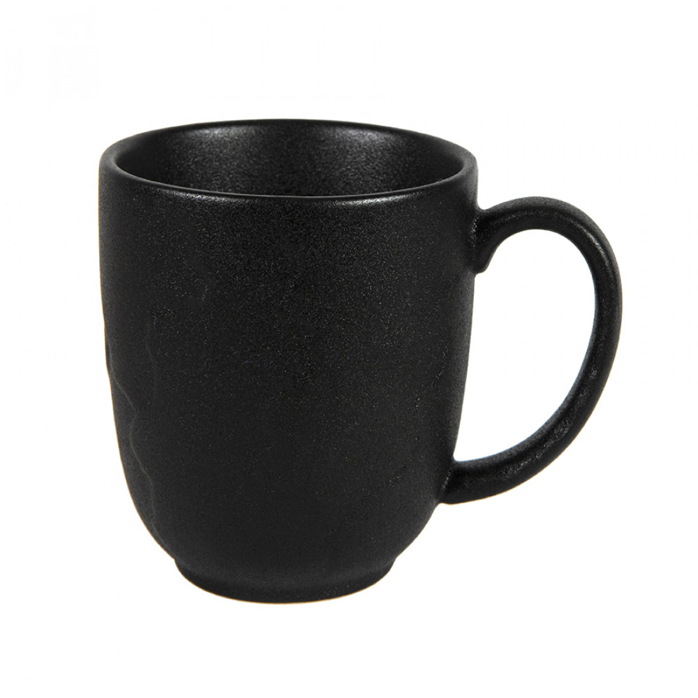 Кружка большого размера с удобной ручкой. Наружная и внутренняя части черного цвета.