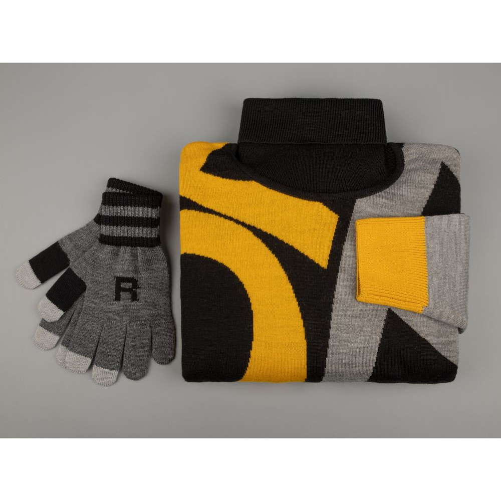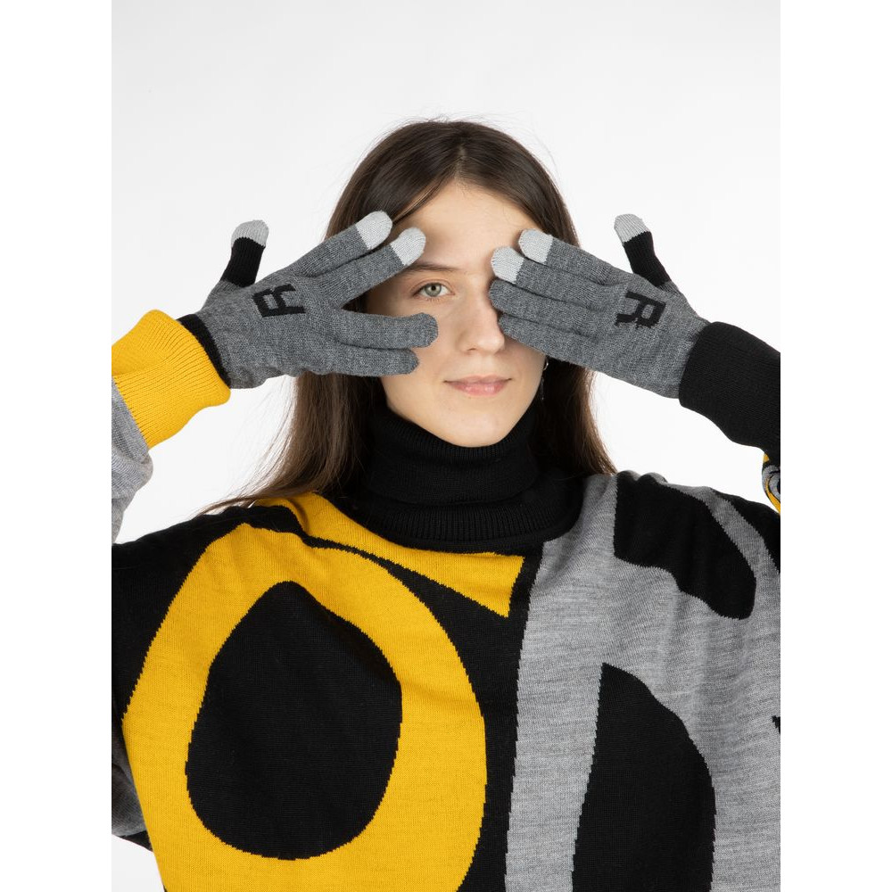 Модель: цельновывязанные бесшовные перчатки с эластичной манжетой и жаккардовым узором в 2-3 цвета. Три пальца: средний, указательный, большой — вяжутся с использованием токопроводящей нити. Манжета может быть полосатой (только горизонтальные полосы 1-2 цветов, без узора и логотипа).