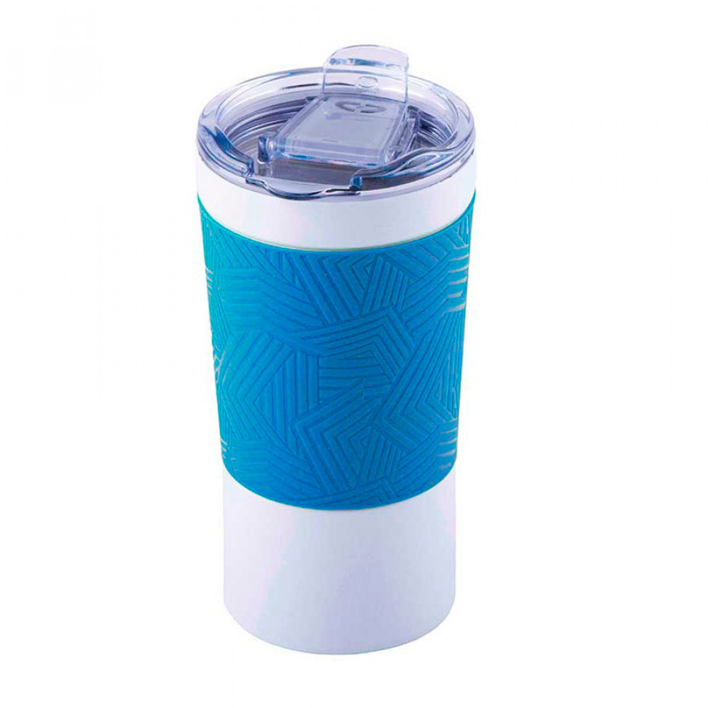 Параметры: Термокружка вакуумная 'Funny" белая, голубой силикон