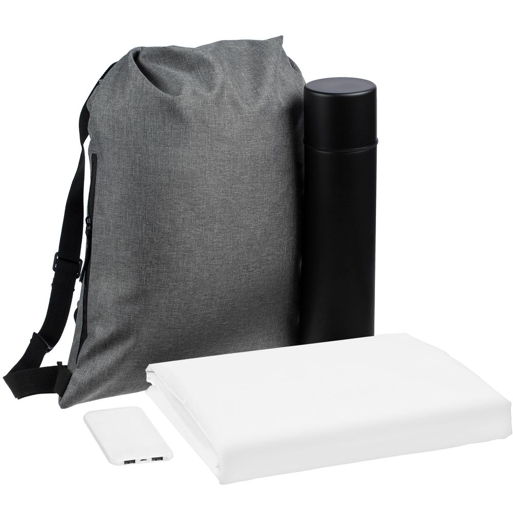 Термос с любимым горячим напитком поможет согреться, с внешним аккумулятором вы всегда будете на связи, а дождевик-анорак из прочной водозащитной ткани таффета легко защитит от любой непогоды.