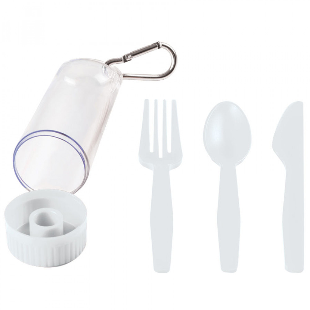 Набор "Pocket":ложка,вилка,нож в футляре с карабином, белый, 4,2х15см,пластик