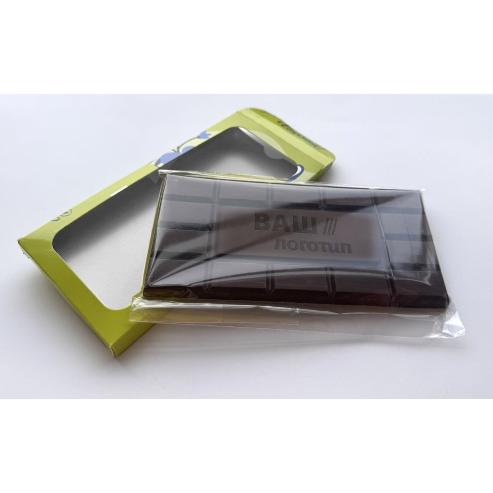 Барельефный шоколад с логотипом в индивидуальной упаковке с окошком.