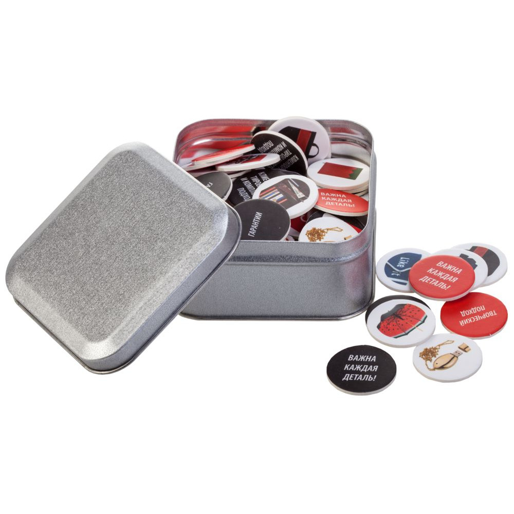 Преимущество плотной жестяной коробочки в том, что ее используют и после того, как подарок распакован — для хранения всяких необходимых в быту мелочей. Таким образом жестяная упаковка с логотипом всегда будет перед глазами ее получателя.