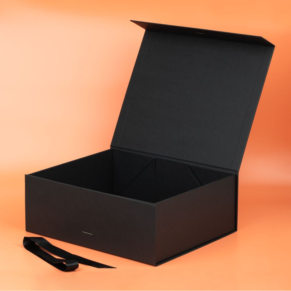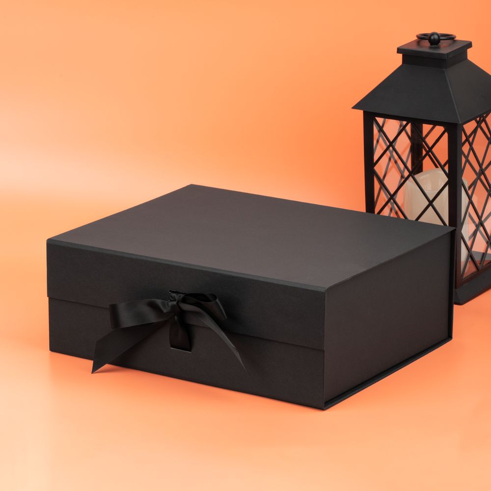 Коробка из переплетного картона, кашированного тонированной в массе крафтовой бумагой. Крышка на двух магнитах дополнительно фиксируется репсовой лентой.Толщина картона 2 мм.