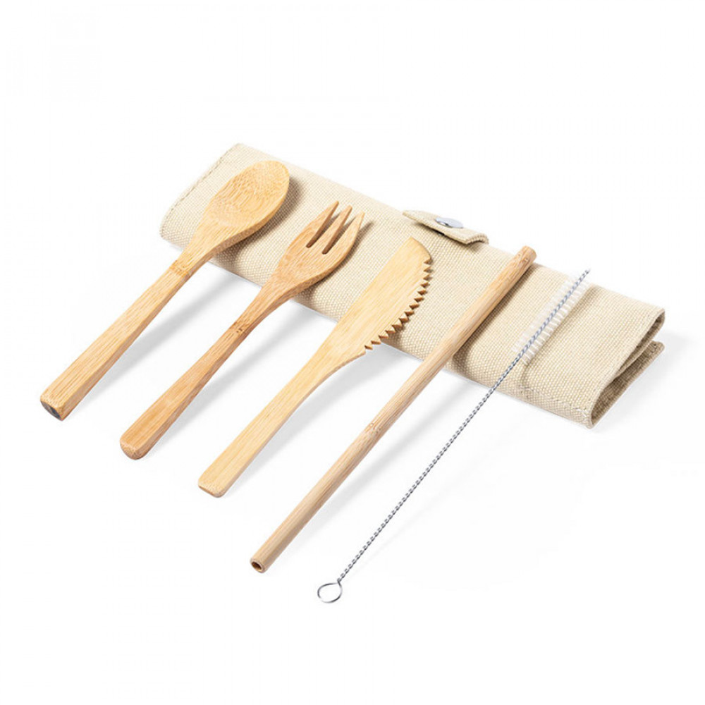 Набор из пяти предметов: ложка, вилка, нож, трубочка для питья с ершиком для чистки.