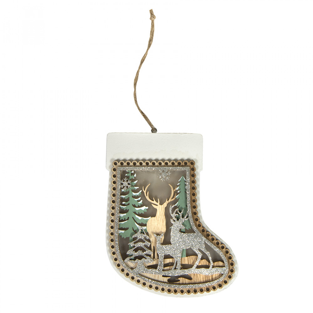 Параметры: Украшение с подсветкой "Валенок", 17,5*14*2 cм, дерево, натуральный бежевый