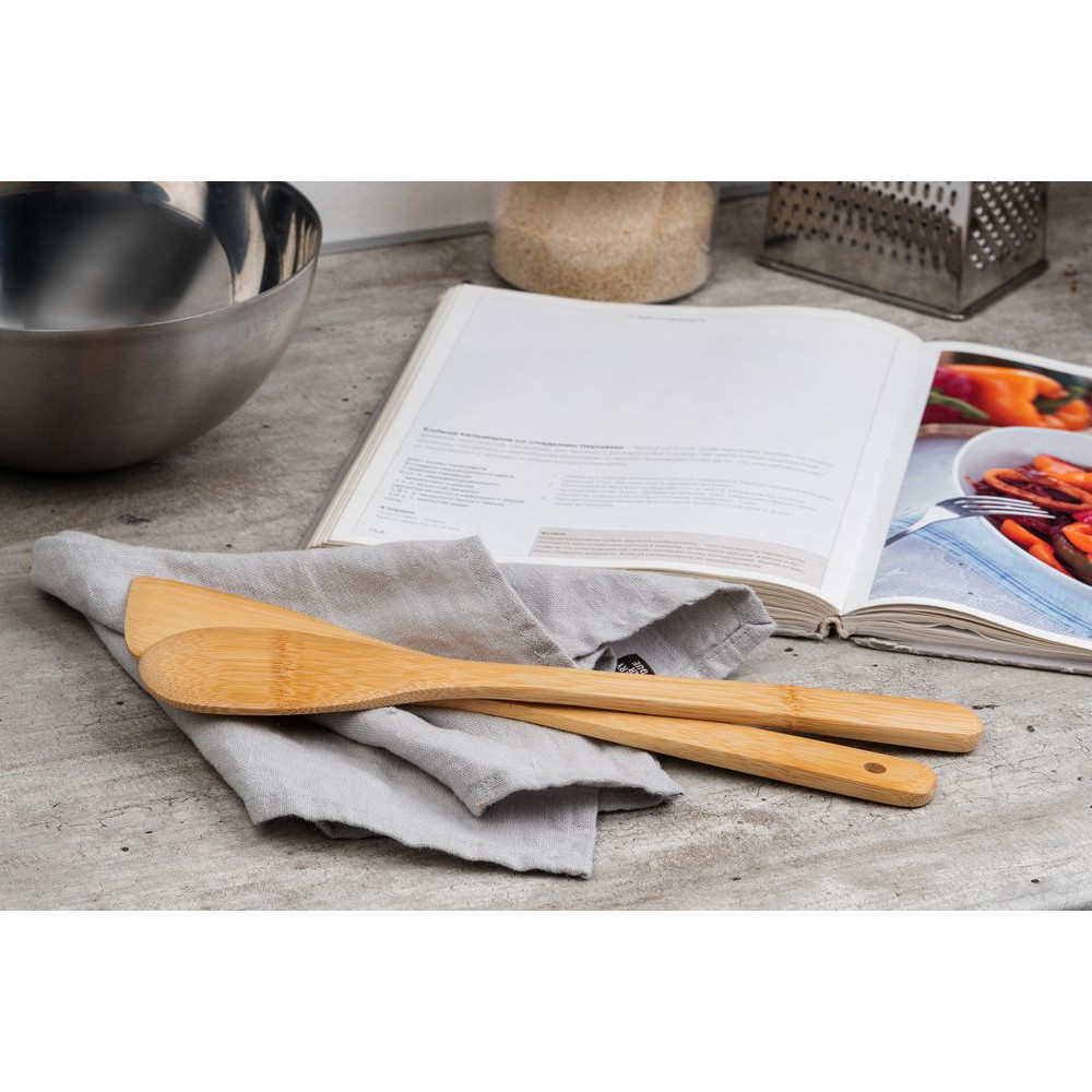 Лопатка изготовлена из бамбука, благодаря чему она не скользит в руке, не царапает поверхность и не впитывает запахи.Поставляется в полиэтиленовом пакете.