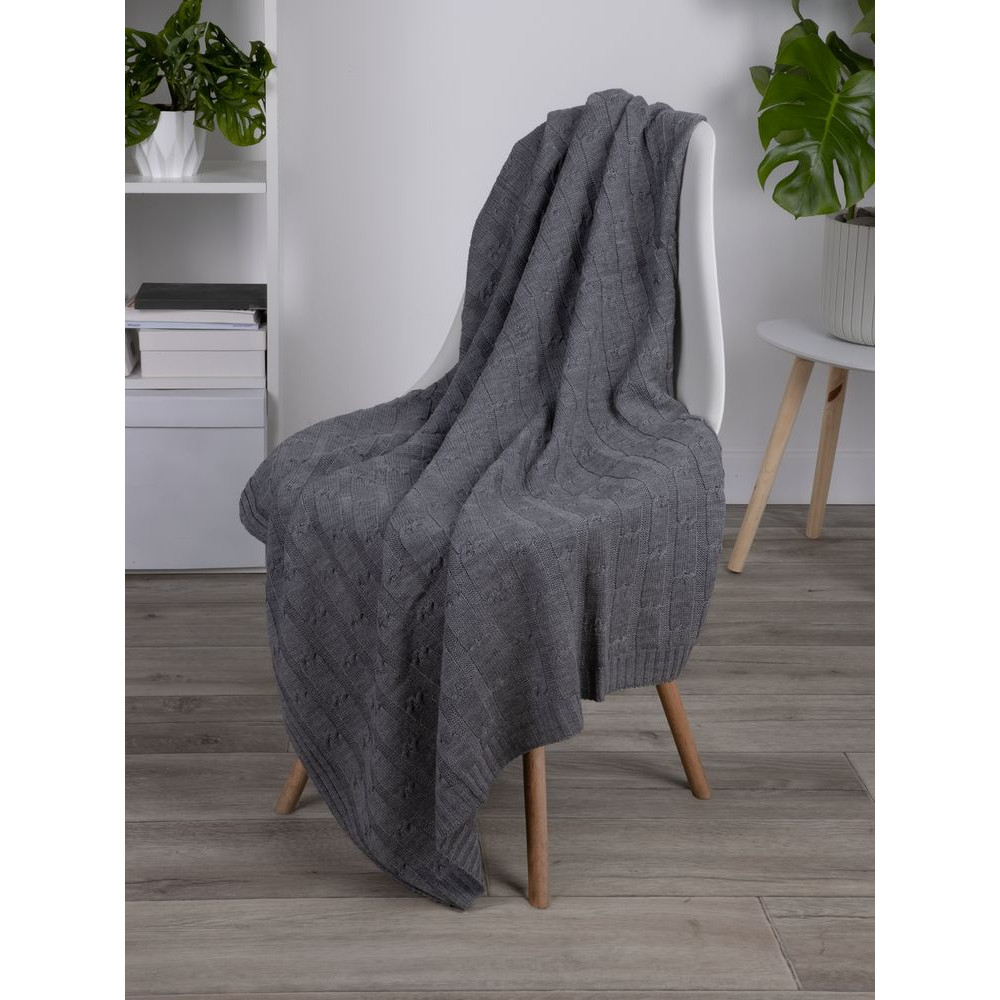 Вязаный плед фактурной вязки из меланжевой пряжи.