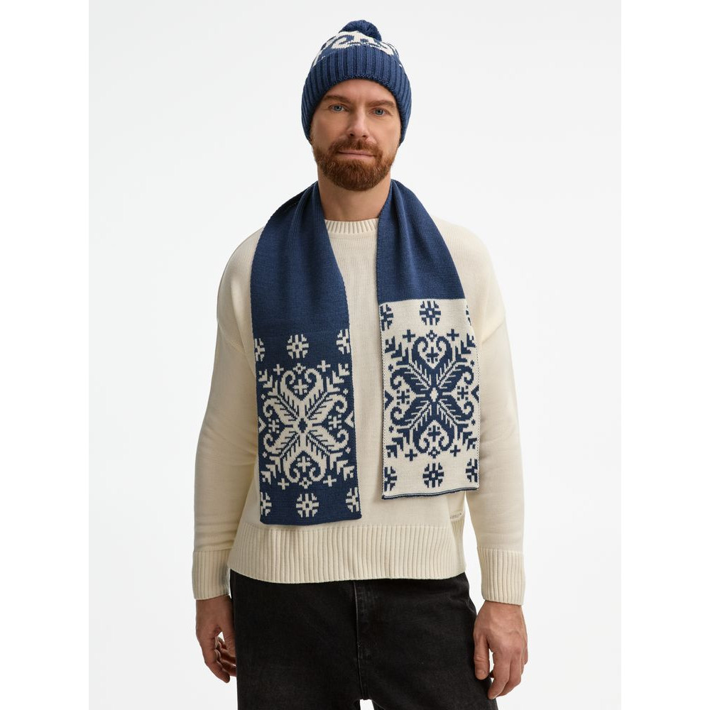 Шарф Wintertude выполнен из качественной полушерстяной пряжи в двух гармоничных цветах, которые подчеркивают сложный жаккардовый рисунок. Двухслойная структура обеспечивает дополнительное тепло и объем, сохраняя при этом легкость и мягкость.
