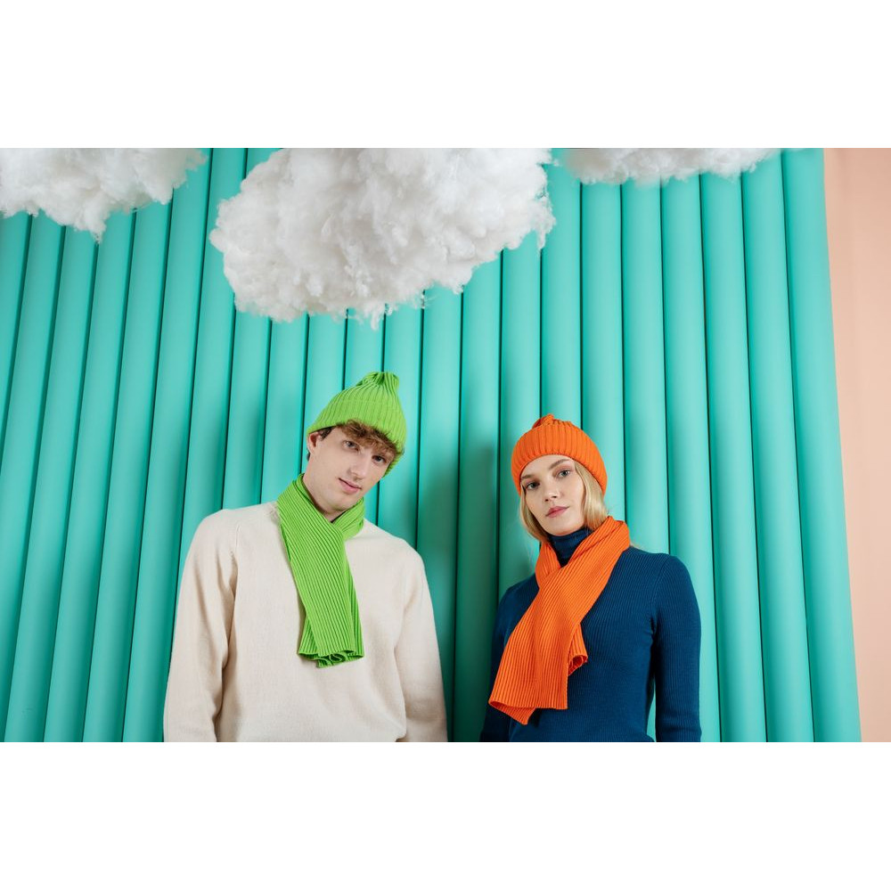 Немного конструкторской смекалки — и вопрос, как красиво завязать шарф Yong, решится сам собой. Пропустите один конец шарфа в отверстие и получите красивую драпировку легким движением руки. А если вы предпочитаете классические узлы, то отверстие, спрятанное в фактурном узоре, не помешает повязать шарф привычным образом.