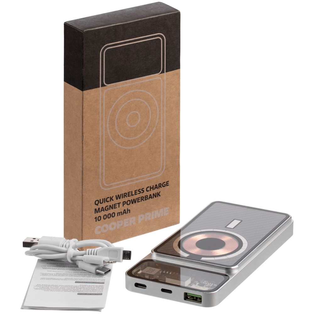 Магнитный беспроводной аккумулятор Cooper Prime 10000 мАч, серебристый