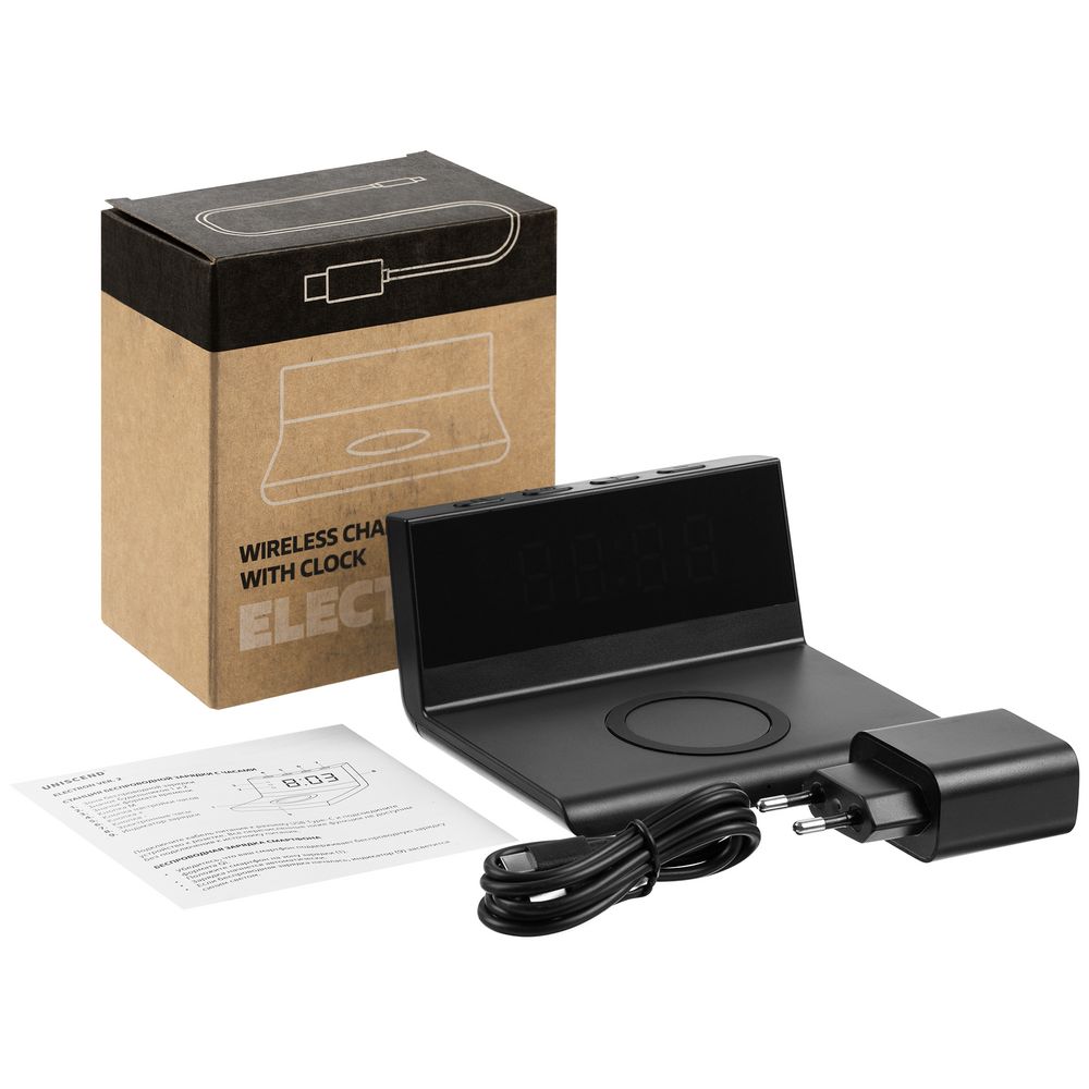 Станция беспроводной зарядки с часами Electron, ver.2, черная